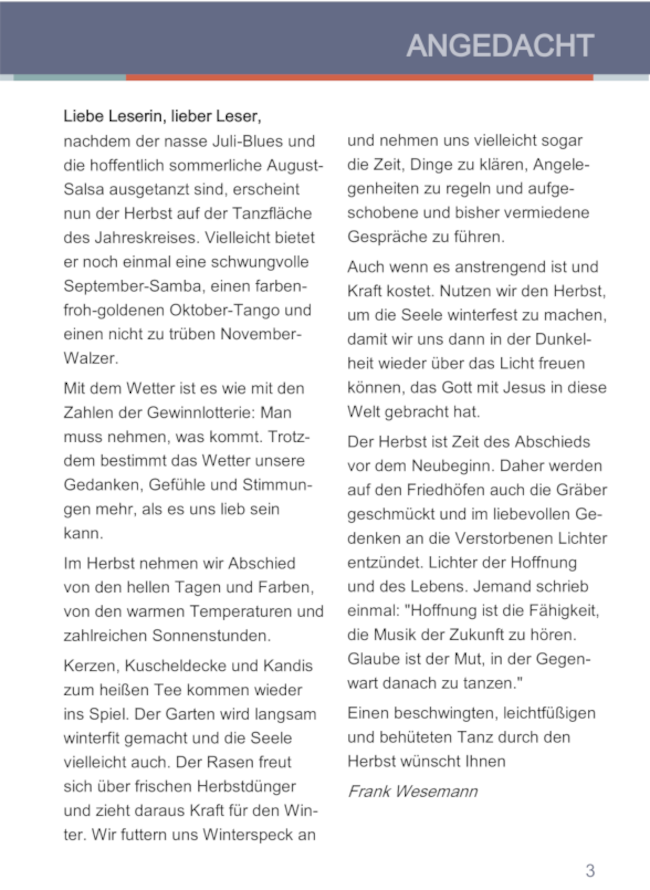 Auszug aus dem Gemeindeboten der ev.-luth. Kirchengemeinde Bortfeld und Wedtlenstedt,