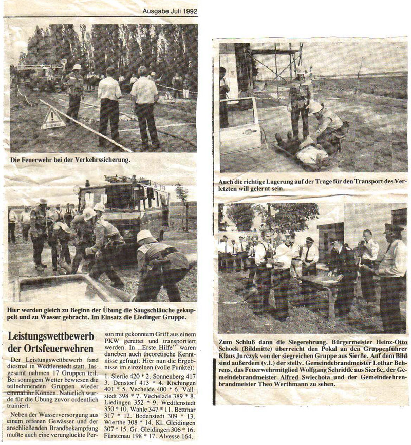 Leistungsprüfung der Feuerwehren der Gemeinde Vechelde in Wedtlenstedt. (Zeitungsbericht, erschienen Vechelder Boten, Juli 1992.)