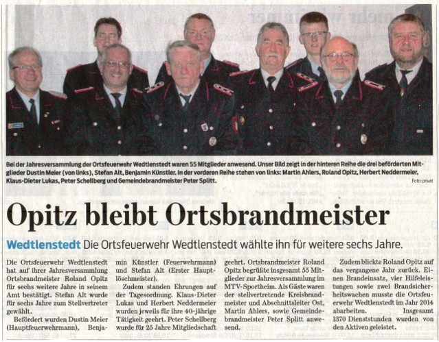 Zeitungsartikel der Braunschweiger Zeitung vom 7. Januar 2015