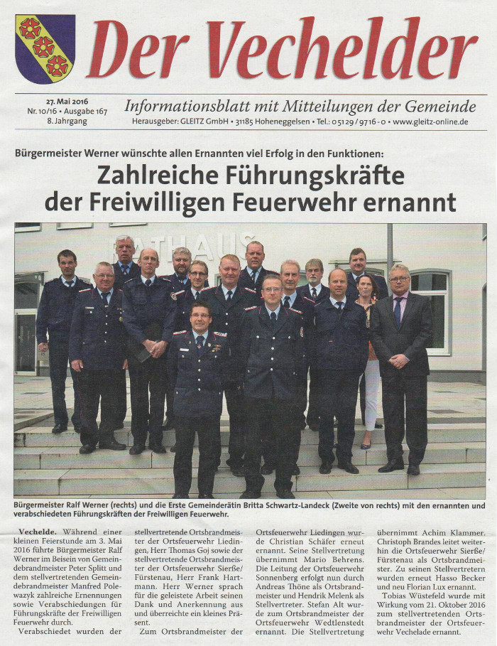 Zeitungsartikel - Der Vechelder - vom 27. Mai 2016