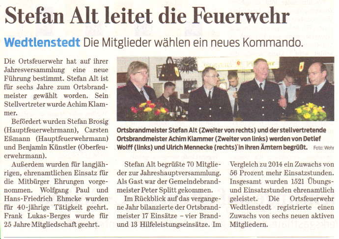 Zeitungsartikel der Braunschweiger Zeitung vom 15. Januar 2016
