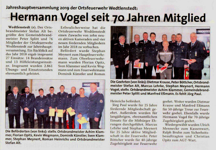 2019 - Jahreshauptversammlung der Ortsfeuerwehr Wedtlenstedt.