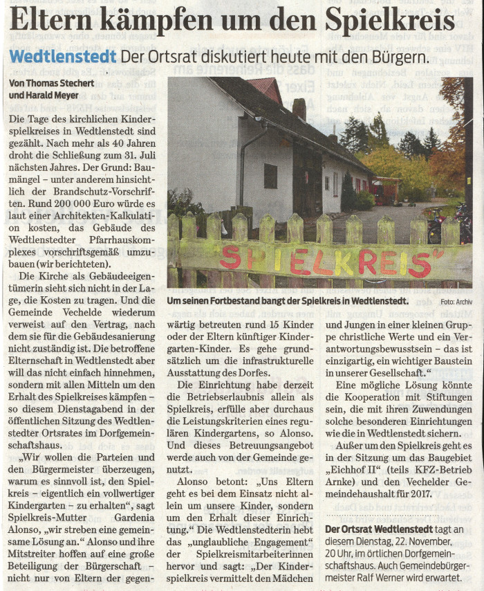 (Artikel der Braunschweiger Zeitung, 22. November 2016)