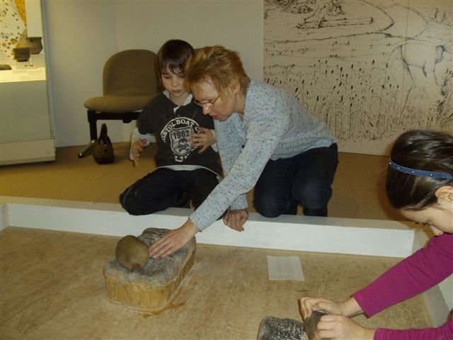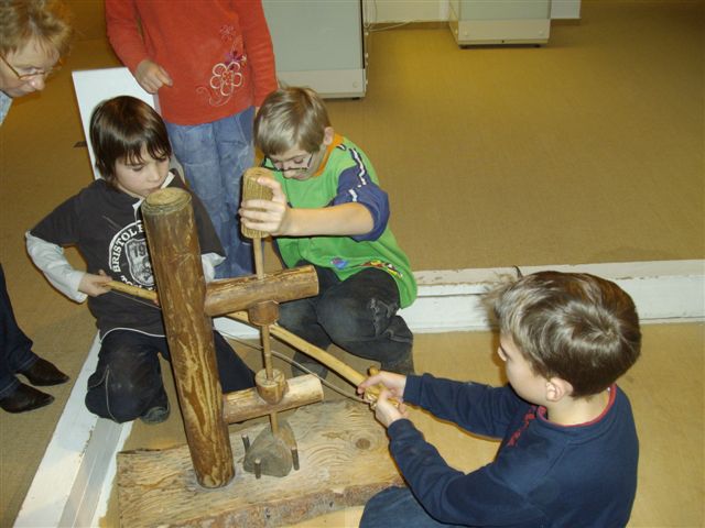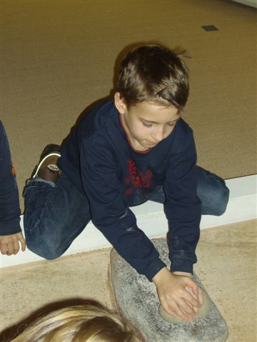 Auch das Mahlen von Getreide war eine sehr mühevolle Angelegenheit. Das Mehl, das wir 14 Kinder gemeinsam hergestellt haben, reicht höchstens für ein Brötchen. Gut, dass wir davon nicht satt werden müssen! Besonders schwierig und zeitaufwendig war das Bohren eines Loches in einen Stein. Damals brauchte man für diese Arbeit auch so circa 8 volle Arbeitstage bis der Stein dann das gewünschte Loch hatte. Heute geht das mit unseren Werkzeugen alles viel schneller und einfacher. Besonders beeindruckend war auch die Fellhöhle, in die wir alle reingekrabbelt sind. Unser Leben heute ist viel bequemer.