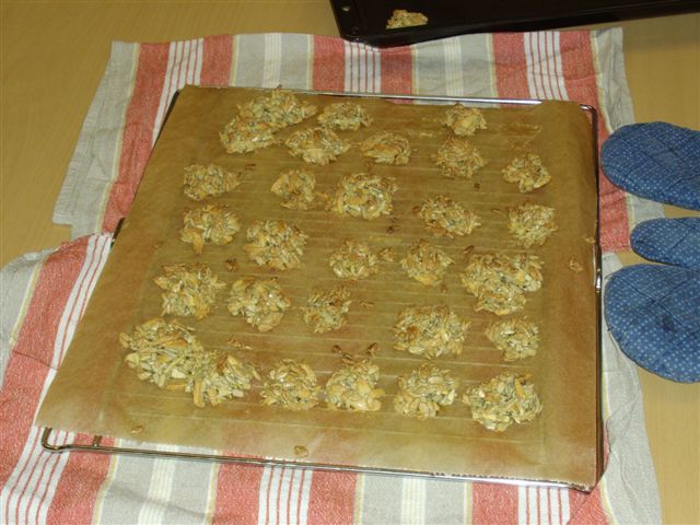 mit Teelöffeln kleine Häufchen auf ein Backblech geben